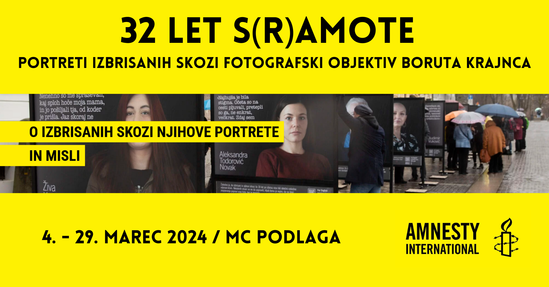 Leta 2022 je Amnesty International ob 30. obletnici izbrisa v sodelovanju z izbrisanimi in s priznanim slovenskim fotografom Borutom Krajncem organiziral razstavo, v kateri je 19 ljudi, izbrisani in njihovi otroci, dovolilo vpogled v svoje izkušnje in privolilo v fotografiranje.