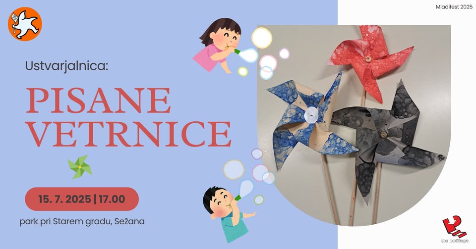 Izdelovali bomo vetrnice in jih okrasili z barvnimi milnimi mehurčki.Ustvarjalnico vodi likovna pedagoginja Julija Leben.