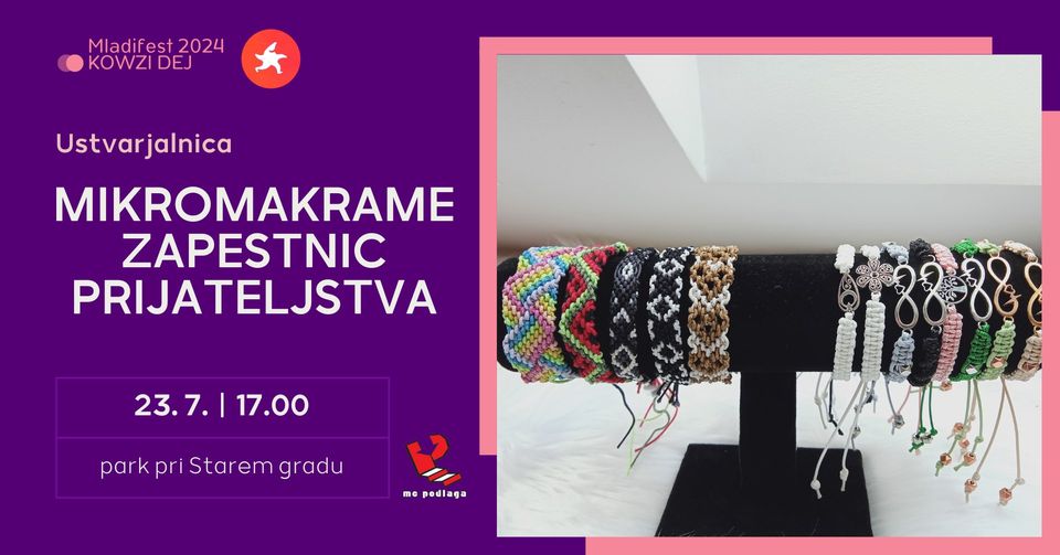 Vabljeni na edinstveno delavnico mikromakrameja, kjer bomo spoznavali čarobnost tkanja vzorcev iz niti in ustvarjali čudovite zapestnice prijateljstva. Delavnico vodi izkušena mentorica Brigita Ložar, ustanoviteljica Trmoglavke, ki poleg te izvaja tudi druge raznovrstne delavnice, njena največja strast pa je šivanje in predajanje šiviljskega znanja. Delavnica je primerna za vse starosti, saj bodo tehnike in vzorci prilagojeni vašim željam in spretnostim. Ne glede na to, ali ste začetnik ali že imate nekaj izkušenj, boste odšli domov z unikatno zapestnico, ki jo boste lahko ponosno nosili ali podarili svojemu prijatelju. Pridite, ustvarjajte in pletite prijateljstvo z nami!