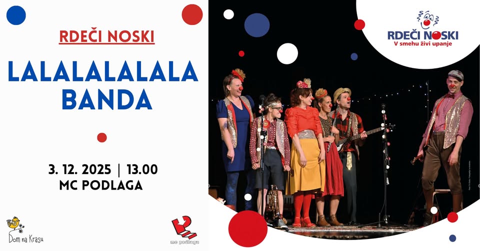 V duhu prihajajočega Veselega decembra vas vabimo na glasbeno obarvan in nasmejan dogodek LALALALALALA BANDA, ki ga pripravljata DOM NA KRASU in MC PODLAGA.